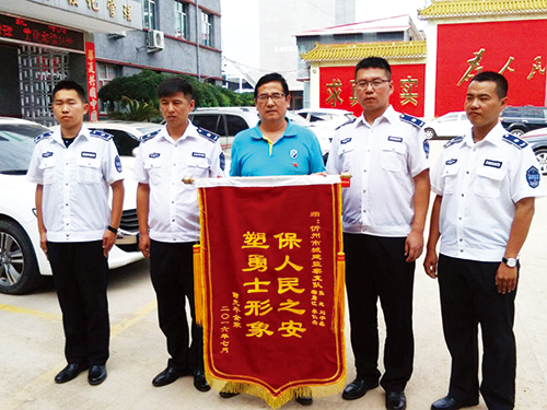 “謝謝你們的幫助,讓我被搶的財(cái)物失而復(fù)得,謝謝、謝謝……”7月13日下午,家住我市城區(qū)學(xué)府街的謝先生連聲感謝,將一面寫有“保人民之安塑勇士形象”字樣的錦旗送到了市城建支隊(duì)協(xié)管大隊(duì)城管隊(duì)員張志、楊勇江、劉宇鑫、李仁杰手中,表達(dá)他對市城建支隊(duì)城管隊(duì)員們見義勇為、熱心為民的感激之情。