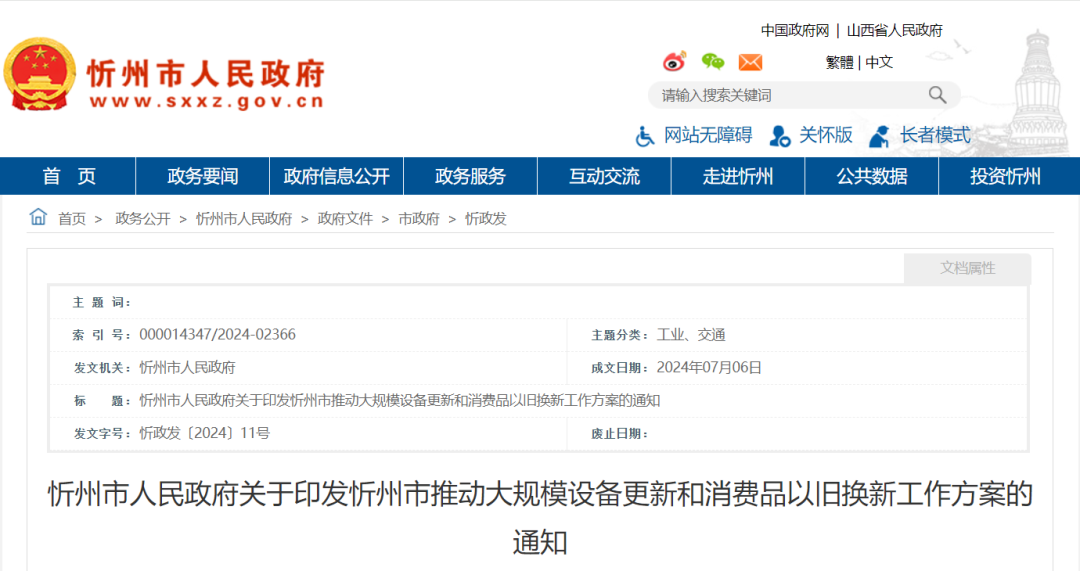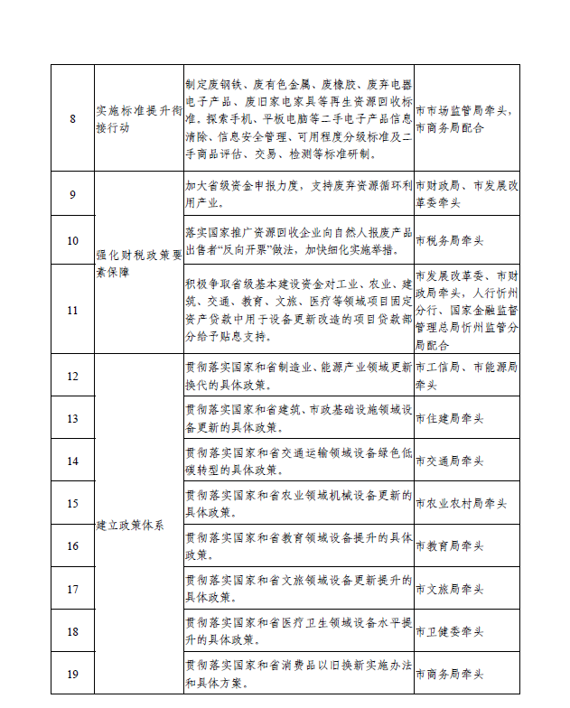 忻州市推動大規(guī)模設(shè)備更新和消費品以舊換新工作方案