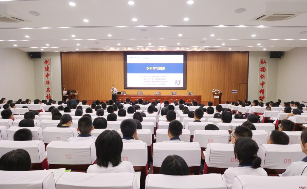 在忻州一中科技樓多功能報告廳,馬軍為師生們作了題為“水科學與健康”的專題報告,圍繞水中礦物質(zhì)及微量元素對健康的影響、飲用水凈化技術、源頭減污降碳技術、智慧水務與智能水廠等方面,立足高中教育階段學情,為廣大師生闡述水科學的內(nèi)涵與知識,并對哈工大生態(tài)文明相關學科的現(xiàn)狀與發(fā)展提出了深刻的見解。在場同學紛紛表示,馬軍院士淵博的學識和對專業(yè)發(fā)展的前景展望讓人受益匪淺,不僅開拓了大家探尋科學的視野與氣度,同時也領略了院士專家的家國情懷、學術風采與人格魅力,激發(fā)了大家積極投身科技強國實踐,努力成為可堪大用、能擔重任的棟梁之材。