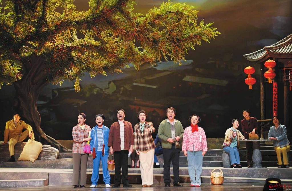 演出當(dāng)天,現(xiàn)場(chǎng)座無虛席,在演員的深情演繹中,一幅波瀾壯闊的時(shí)代畫卷躍然眼前。劇情跨越1979年至2019年40年時(shí)光,細(xì)膩講述了一代民歌王何長(zhǎng)歌和他的女兒何娟娟兩代民歌人薪火相傳,在保護(hù)、傳承和發(fā)展河曲民歌二人臺(tái)過程中不懈奮斗的感人故事。數(shù)十首或磅礴大氣、或婉轉(zhuǎn)悠揚(yáng)、或輕松歡快的歌曲貫穿劇中,借助布景、燈光、服裝、效果、道具等舞美設(shè)計(jì),該劇將河曲文化習(xí)俗、方言等特色元素“搬上”舞臺(tái),為觀眾呈上一場(chǎng)精彩絕倫的視聽盛宴。
