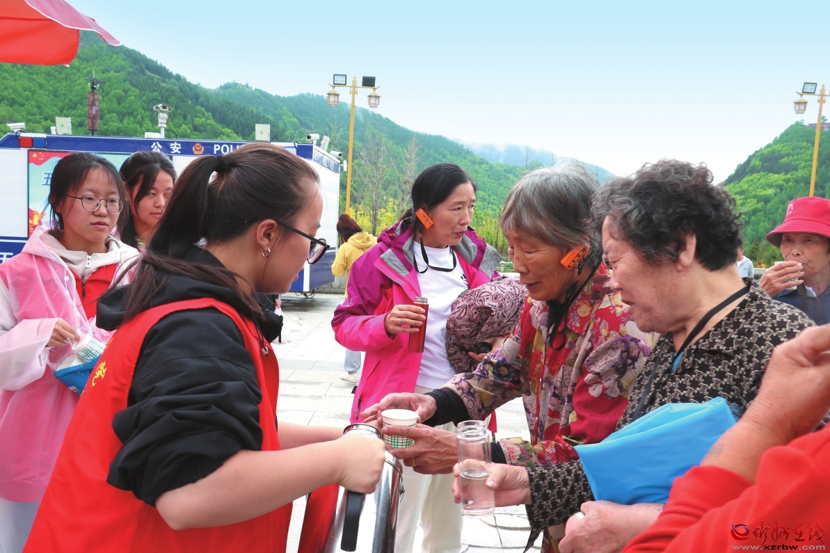 五臺山景區(qū)志愿者為游客服務。馬曉琴攝