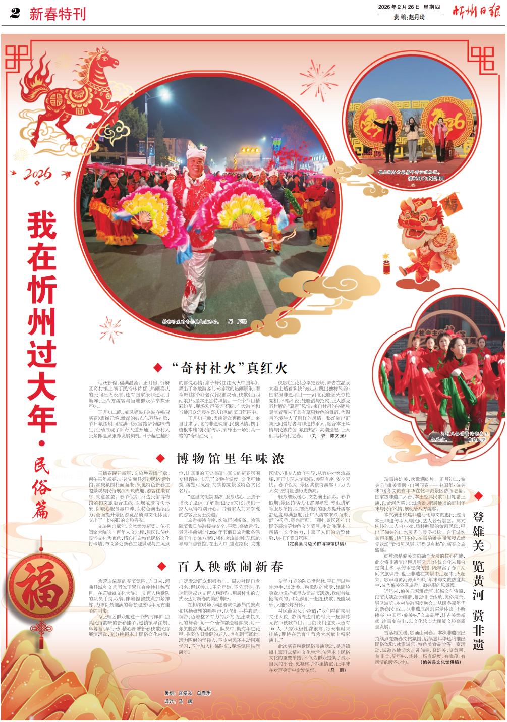 馬躍新程,福滿溫湯。正月里,忻府區(qū)奇村鎮(zhèn)上演了民俗味濃郁、熱鬧喜慶的民間社火表演,還有國(guó)家級(jí)非遺項(xiàng)目助陣,讓八方游客與當(dāng)?shù)厝罕姳M享歡樂年味。