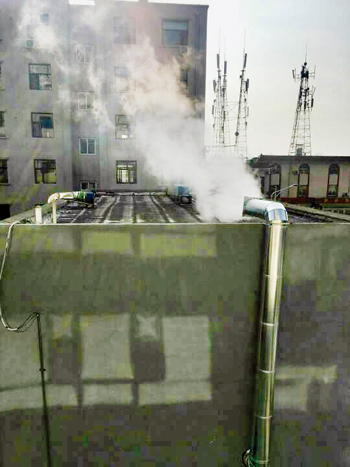 圖1為城區(qū)榮鈺苑小區(qū)院內(nèi)一飯店,四個排氣煙筒發(fā)出的噪音讓小區(qū)周邊居民無法正常休息,排放出的油煙散發(fā)出嗆人的味道,住戶沒法開窗戶,希望相關(guān)部門管理。一網(wǎng)友攝