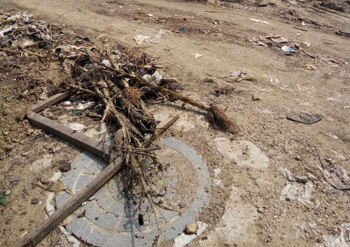 一位村民指著西面被垃圾包圍的一個鐵皮焊接成的小門說:“這就是我們?nèi)迦顺运乃?,水從井里抽出,通過管道送往距此地約300多米的蓄水池,然后在供給各家各戶,這是我們?nèi)逦ㄒ坏某运??!?/p>
