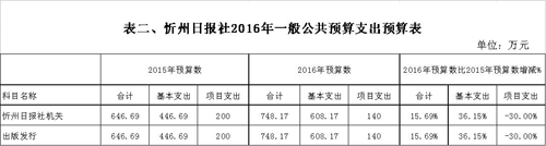 忻州日?qǐng)?bào)社2016年度部門預(yù)算及“三公”經(jīng)費(fèi)預(yù)算公開(kāi)情況