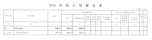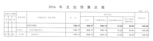 忻州日?qǐng)?bào)社2016年度部門預(yù)算及“三公”經(jīng)費(fèi)預(yù)算公開(kāi)情況