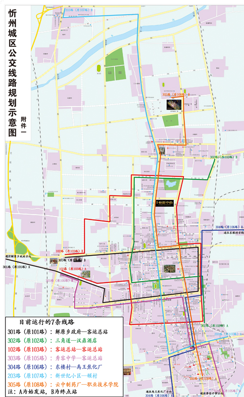 途經(jīng)站點:火車站→云中路小學(xué)→和平廣場→市人民銀行→忻州師院→建設(shè)路口→忻州市供水公司→客運中心→解原村口→大西高鐵站→小奇村口→北趙村口→河拱村→頓村→旭來街口,共15個站點;