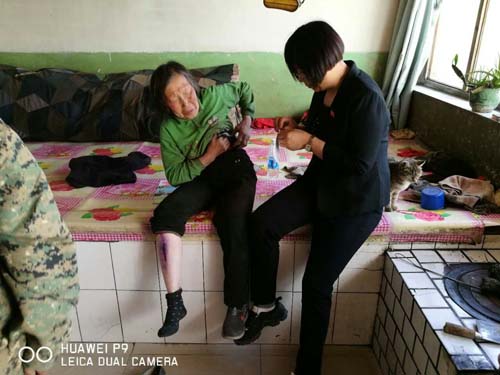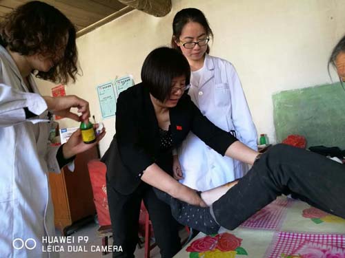 5月16日,忻州市衛(wèi)計(jì)委副主任楊春枝帶著黨支部部分黨員和忻州市中醫(yī)院的醫(yī)護(hù)人員再次趕赴到扶貧點(diǎn)寧武縣涔山鄉(xiāng)漚泥灣村,一進(jìn)村她(他)們連口水也沒(méi)有來(lái)得及喝,就安排中醫(yī)院醫(yī)護(hù)人員給村民們進(jìn)行體檢,楊主任和支部黨員就組織村委在村的6名黨員干部召開(kāi)維護(hù)核心見(jiàn)諸行動(dòng)專(zhuān)題黨課,她(他)們共同重溫黨章,面對(duì)黨旗舉手宣誓,楊主任親自上臺(tái)主講了一堂生動(dòng)的黨課。隨后,她(他)們?cè)俅慰赐素毨?,在幫扶?lián)系貧困戶張存花家中,楊春枝主任從包里掏出自費(fèi)購(gòu)買(mǎi)的膏藥,并親手扶起衣服給老人貼在患處?!澳銈兇罄线h(yuǎn)的每次都來(lái)看望我,上次我說(shuō)腰疼,這次就給我?guī)?lái)了膏藥,還親手給我貼上,不知道該怎樣感謝呀,這閨女就是比親閨女都親……”寧武縣涔山鄉(xiāng)漚泥灣村80歲的殘疾貧困戶張存花緊緊拉著扶貧干部忻州市衛(wèi)計(jì)委副主任楊春枝的手,激動(dòng)地久久不肯松開(kāi)。(郝法林 米永平)