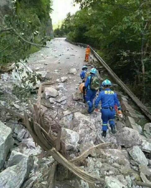 隨后進入災(zāi)區(qū)展開救援,九寨溝是世界自然遺產(chǎn)、國家重點風(fēng)景名勝區(qū)、國家5A級旅游景區(qū)、國家級自然保護區(qū)、國家地質(zhì)公園、世界生物圈保護區(qū)網(wǎng)絡(luò),是中國第一個以保護自然風(fēng)景為主要目的的自然保護區(qū)。此次遭受7.0級巨大地震破壞后,昔日那一片勝景遭受到重大的破壞,整個景區(qū)滿目瘡痍,很多非常有特色的景點一片狼藉。當時大腦里什么也不想,只有一個念頭“搜救”。我們的工作實施重點是圍繞人員搜救、組織群眾疏散、帳篷搭建、醫(yī)療救助、信息排查、物資補給發(fā)放、人員轉(zhuǎn)移、災(zāi)區(qū)受災(zāi)情況評估報告等,打通通往震中重災(zāi)區(qū)的路線,成功搜救被困景區(qū)腹地,失聯(lián)超過40小時的10名被困群眾,搜索到遇難者遺體5具、協(xié)助排查失聯(lián)群眾求助12次??焖倥挪樵u估所有重災(zāi)村鎮(zhèn),救治傷病員若干。由于心情著急,救援戰(zhàn)斗顯得很是漫長,截止12日20時余震發(fā)生總數(shù)3089次,其中4.0—4.98級余震3次,3.0—3.9級26次,最大余震4.8級,有一次余震來臨,當時我們正好就在震中,我和另一名隊員躲在大樹后,從上面“飛”下來的石頭就像子彈一樣從耳邊掠過,眼前灰朦朦一片。