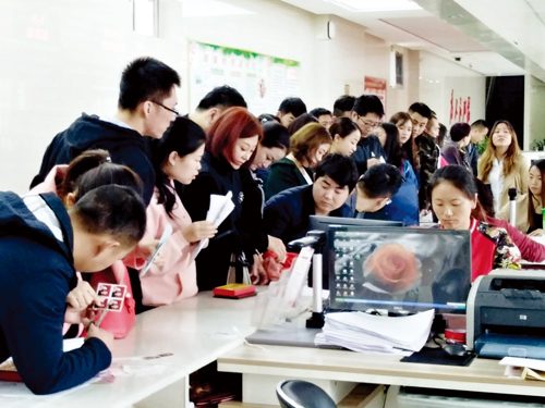 圖為現(xiàn)場扎堆領(lǐng)證的準(zhǔn)新人 張林泉 攝影報(bào)道