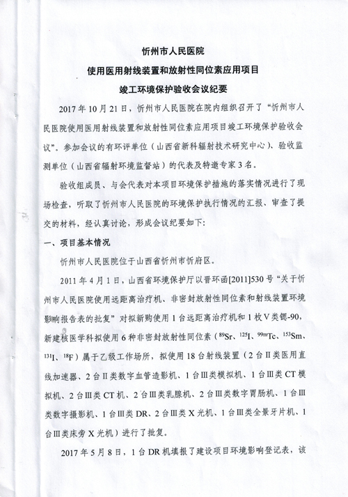 忻州市人民醫(yī)院環(huán)保驗收公告