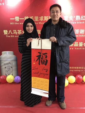 12月13日,毛里求斯姑娘早上從河南來,到原平八馬茶業(yè)店推介毛里求斯國禮茶。