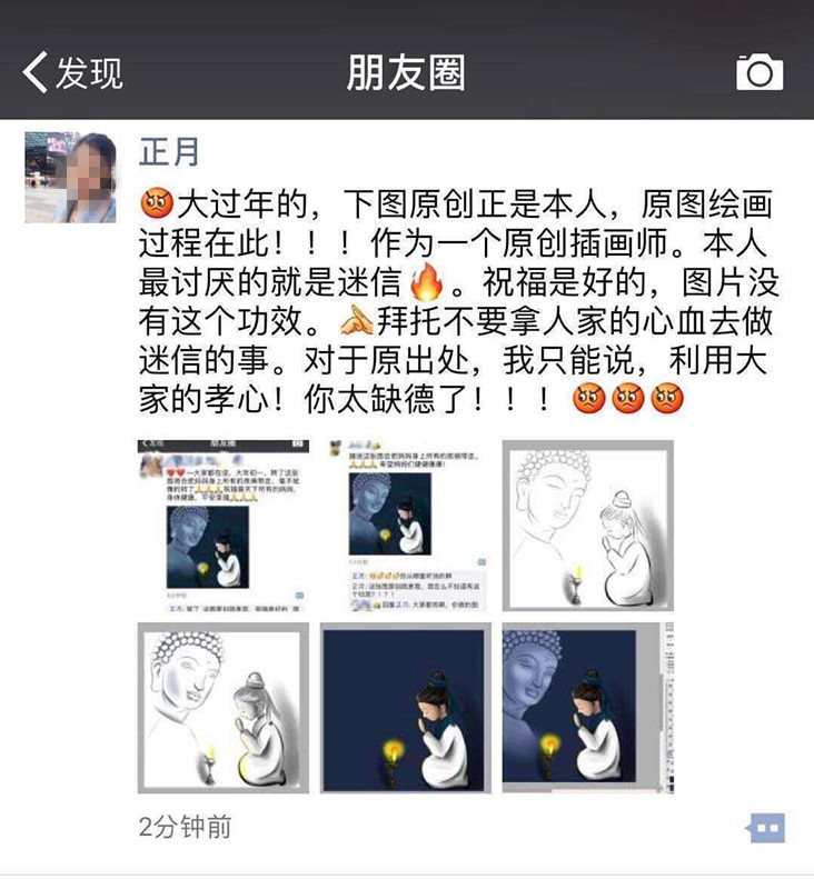 @正月插畫師在聲明中還特別強(qiáng)調(diào):自己很討厭迷信,這畫火的十分突然。那些利用大家的孝心的人!太缺德了?。。?/p>