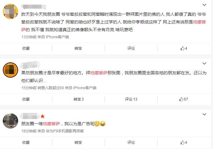社交媒體上的瘋狂轉(zhuǎn)發(fā)之風(fēng)也引起了一些網(wǎng)友的不適,有網(wǎng)友評(píng)論:都孝順成這樣了,還說(shuō)那是地藏菩薩,佛像額頭有月亮?