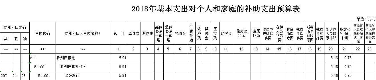 7、基本支出對個人和家庭的補助支出預(yù)算表