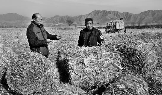 入冬以來,五臺(tái)縣委、縣政府組織有關(guān)單位深入到田間地頭,宣傳《五臺(tái)縣環(huán)境保護(hù)局大氣污染防治規(guī)則》和《五臺(tái)縣畜牧局秸稈深加工實(shí)施辦法》,面對(duì)面給農(nóng)民講解燒秸稈污染空氣和打包秸稈喂牛的好處。東寨村養(yǎng)牛大戶閆忠海高興地說:“你們這樣解釋,咱懂?!h(huán)保+飼料’咱農(nóng)民記得牢。我已在7個(gè)村打包秸稈7200畝,保證不燒一根,全部喂?!薄D為田間清理、加工秸稈。金俊賢 攝