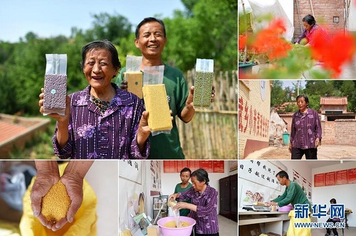 張成華,女,1949年出生,山西省長治市武鄉(xiāng)縣嶺頭村人。近年來,嶺頭村在縣里有關部門的扶持下,對村民開展電商培訓。村民們嘗試著在手機上“開店”,把小米、核桃、綠豆等農(nóng)產(chǎn)品在網(wǎng)絡上售賣。張成華的兒子魏寶玉開了網(wǎng)店后,自家的農(nóng)產(chǎn)品在網(wǎng)上銷售良好,家庭收入明顯增加。 左上:張成華(前)和兒子魏寶玉展示自家種的農(nóng)產(chǎn)品;右上:張成華在家中院子里收拾;右中:張成華走在村里的路上;右下:張成華的兒子魏寶玉將準備發(fā)貨的農(nóng)產(chǎn)品進行稱重;下中:張成華(前)將小米裝袋;下左:張成華在查看小米質(zhì)量(拼版照片,6月12日攝)。 地處晉東南的山西省長治市,位于由太行山、太岳山環(huán)繞而成的上黨盆地中。在群山中、崖壁上,許多村莊自然條件惡劣,基礎設施落后,脫貧致富是大山深處人們的迫切心愿。 近年來,一場場脫貧攻堅戰(zhàn),在一個個深山村打響。政府全力探索脫貧路徑的同時,山區(qū)百姓因地制宜,靠自己的雙手和智慧走上致富路,交出了一份扎實的脫貧答卷。 記者在太行山、太岳山一路尋訪,記錄下多位70歲老人的生活。這些共和國的同齡人,親歷了山鄉(xiāng)的巨變,見證著長治山區(qū)脫貧攻堅偉大工程的一步步推進。 新華社記者 詹彥 攝