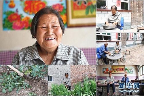 張桂香,女,1949年出生,山西省長治市沁源縣西務村人。2015年,她因病被納入建檔立卡貧困戶。在當地政府和駐村工作隊調查研究后,張桂香家得以享受光伏扶貧收益資金,丈夫趙九勝也被聘用為護林員。2018年,他們家年收入超過了8000元。 左上:張桂香肖像;右上:張桂香在家里洗菜;右中:張桂香(右)和老伴趙九勝在家里洗菜;下右:張桂香(左)和老伴趙九勝在家里合影;下中、下左:張桂香在家門口的菜地里干活(拼版照片,6月20日攝)。 地處晉東南的山西省長治市,位于由太行山、太岳山環(huán)繞而成的上黨盆地中。在群山中、崖壁上,許多村莊自然條件惡劣,基礎設施落后,脫貧致富是大山深處人們的迫切心愿。 近年來,一場場脫貧攻堅戰(zhàn),在一個個深山村打響。政府全力探索脫貧路徑的同時,山區(qū)百姓因地制宜,靠自己的雙手和智慧走上致富路,交出了一份扎實的脫貧答卷。 記者在太行山、太岳山一路尋訪,記錄下多位70歲老人的生活。這些共和國的同齡人,親歷了山鄉(xiāng)的巨變,見證著長治山區(qū)脫貧攻堅偉大工程的一步步推進。 新華社記者 楊晨光 攝