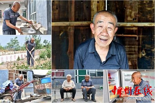 郭中其,男,1949年出生,山西省長治市潞城區(qū)常村人,全家6口人靠種地為生,因家人重病而造成生活困難。被納入建檔立卡貧困戶后,郭中其家人治病的花銷顯著減少,子女參加了免費技能培訓(xùn)并找到了工作,家里的生活條件得到了改善,2017年全家脫了貧。 右上:郭中其肖像;左上:郭中其在院子里接水;左中:郭中其在田地里鋤草;左下:郭中其在擦拭拖拉機;下中:郭中其和老伴坐在院子里;下右:郭中其從冰箱里拿出西紅柿(拼版照片,6月12日攝)。 地處晉東南的山西省長治市,位于由太行山、太岳山環(huán)繞而成的上黨盆地中。在群山中、崖壁上,許多村莊自然條件惡劣,基礎(chǔ)設(shè)施落后,脫貧致富是大山深處人們的迫切心愿。 近年來,一場場脫貧攻堅戰(zhàn),在一個個深山村打響。政府全力探索脫貧路徑的同時,山區(qū)百姓因地制宜,靠自己的雙手和智慧走上致富路,交出了一份扎實的脫貧答卷。 記者在太行山、太岳山一路尋訪,記錄下多位70歲老人的生活。這些共和國的同齡人,親歷了山鄉(xiāng)的巨變,見證著長治山區(qū)脫貧攻堅偉大工程的一步步推進。 新華社記者 曹陽 攝