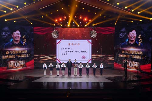 朱有勇在“時代楷?!卑l(fā)布儀式上領(lǐng)取獎章和證書(11月29日攝)。 新華社記者 金良快 攝