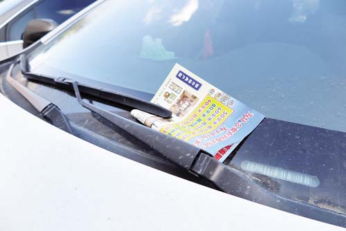 情況三:在日常生活里,我們經(jīng)常會看到一些散發(fā)銷售商品房廣告的人將廣告紙放到汽車的雨刮器下面,如果駕駛員不及時(shí)清理,會遮擋前方玻璃的視線;一旦廣告紙順勢滑入汽車前蓋下的驅(qū)動器械里面,還可能造成不可預(yù)測的安全隱患。