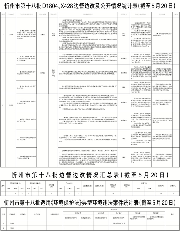 我市高度重視,立即組織查處,截至5月20日,督辦的4件和續(xù)報(bào)的2件群眾反映問題已辦結(jié)。其中,確認(rèn)部分屬實(shí)5件;確認(rèn)不屬實(shí)1件。對(duì)于部分屬實(shí)已辦結(jié)的環(huán)保問題,分別采取了相應(yīng)處理措施,其中罰款39.3萬元,對(duì)30名相關(guān)責(zé)任人進(jìn)行了約談,對(duì)7名相關(guān)責(zé)任人進(jìn)行了黨紀(jì)政紀(jì)處分。對(duì)6件群眾反映問題調(diào)查處理情況進(jìn)行了信息公開。
