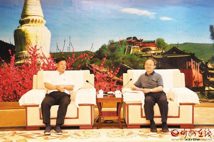 市委書記鄭連生與北京城建道橋建設(shè)集團(tuán)有限公司黨委書記姚自然會(huì)談。本報(bào)記者 劉紀(jì)森 攝