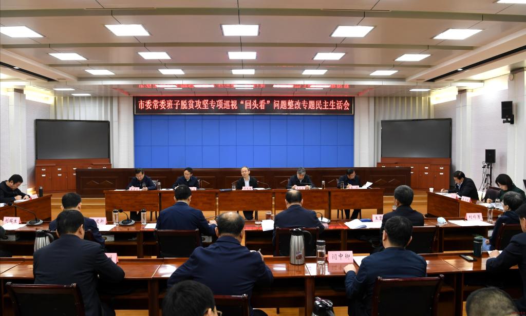 本網(wǎng)訊 按照省委、省紀委的部署要求,10月23日,市委常委班子召開脫貧攻堅專項巡視“回頭看”問題整改專題民主生活會,深入學習貫徹習近平總書記關于扶貧工作、巡視工作重要論述,進一步學習貫徹習近平總書記“三篇光輝文獻”和視察山西重要講話重要指示,按照省委“四為四高兩同步”總體思路和要求,對照省委脫貧攻堅專項巡視“回頭看”反饋意見,堅持問題導向和結果導向的統(tǒng)一,堅持思想整改和行動整改的統(tǒng)一,深刻進行檢視和剖析,嚴肅開展批評和自我批評,進一步明確努力方向和整改措施,全力以赴扎實推進省委脫貧攻堅專項巡視“回頭看”問題整改工作,做好巡視“后半篇文章”,確保脫貧攻堅決戰(zhàn)完勝、交好總賬。市委書記鄭連生主持會議并作總結講話。市委副書記、市長、政法委書記朱曉東,市委副書記郭奔勝,市人大常委會主任王珍,市政協(xié)主席王建廷,市委常委、政府副市長,以及市直有關部門主要負責同志參加會議。