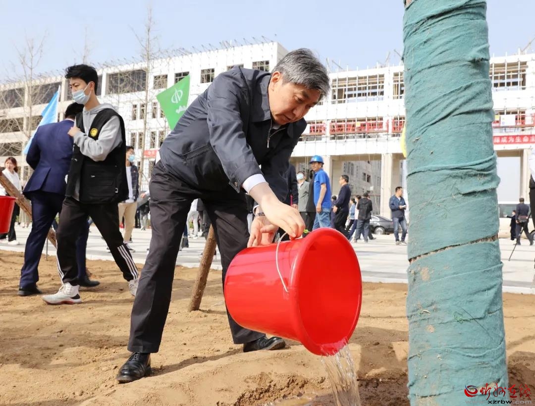 誓師大會(huì)后,與會(huì)人員共同為師院新校區(qū)植樹(shù)綠化。