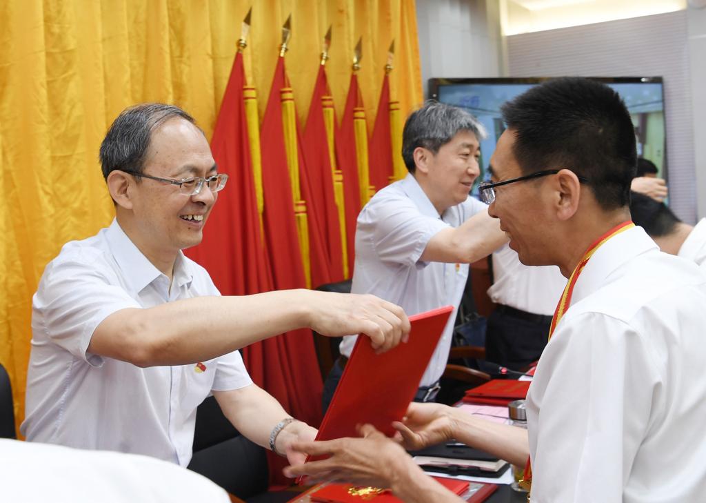 鄭連生為受表彰的優(yōu)秀個(gè)人和先進(jìn)集體代表頒獎(jiǎng)。劉紀(jì)森 攝