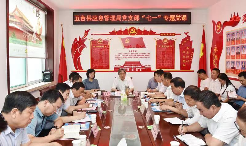 與五臺(tái)縣應(yīng)急管理局黨支部同志重溫入黨誓詞。馮曉磊 攝