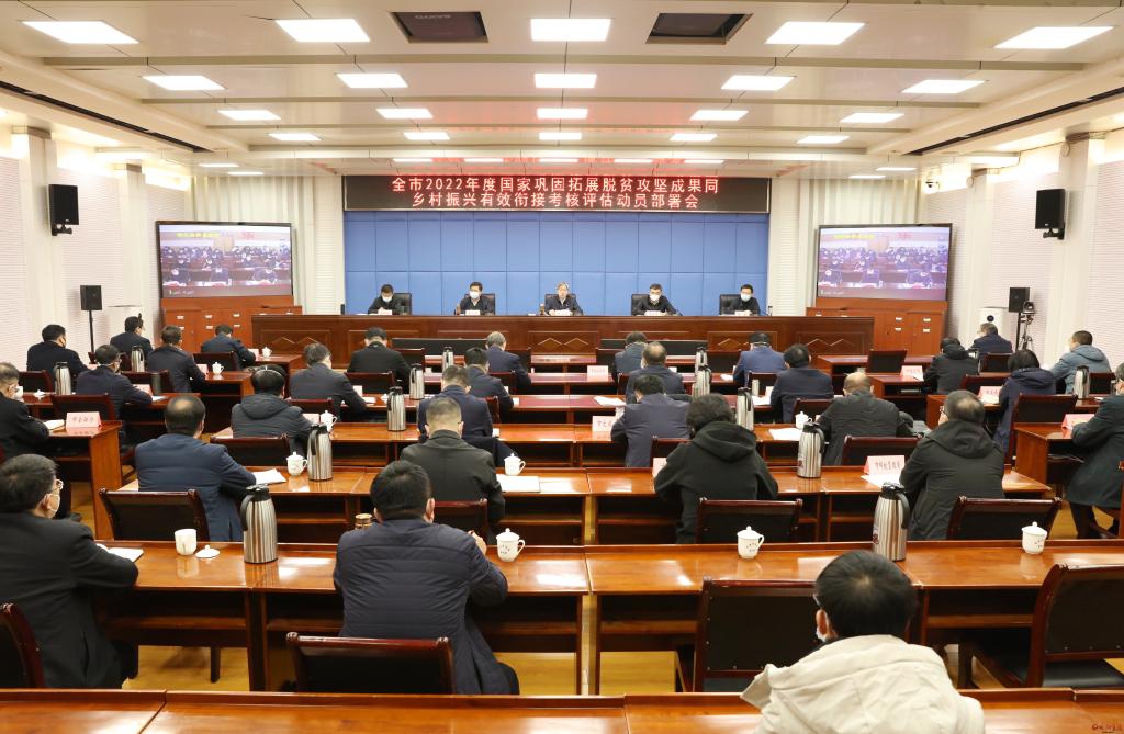 12月6日,全市2022年度國家鞏固拓展脫貧攻堅成果同鄉(xiāng)村振興有效銜接考核評估動員部署會以視頻形式召開,貫徹落實省相關(guān)會議精神,對標(biāo)要求進一步安排部署各項工作。市委書記朱曉東主持會議并作重要講話。市委副書記、市長李建國出席。市領(lǐng)導(dǎo)張文偉、張敏、崔崢嶺,市政府秘書長張艮生,市鞏固銜接領(lǐng)導(dǎo)小組成員單位負(fù)責(zé)人在市主會場參加會議,各縣(市、區(qū))設(shè)分會場。