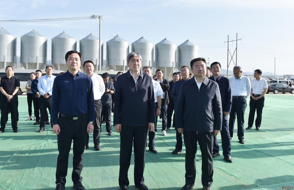 在東方希望畜牧有限公司觀摩檢查現(xiàn)代化高效生態(tài)循環(huán)養(yǎng)殖產業(yè)鏈項目建設情況。馮曉磊 攝
