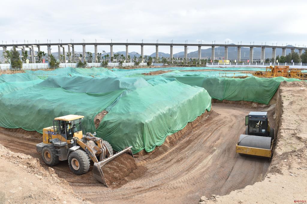 在西雙萬噸智慧物流園觀摩檢查鐵路專用線運營情況。馮曉磊 攝