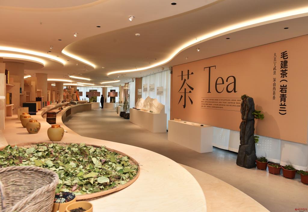 在農業(yè)特優(yōu)館觀摩檢查藥茶專業(yè)鎮(zhèn)系列產品情況。馮曉磊 攝