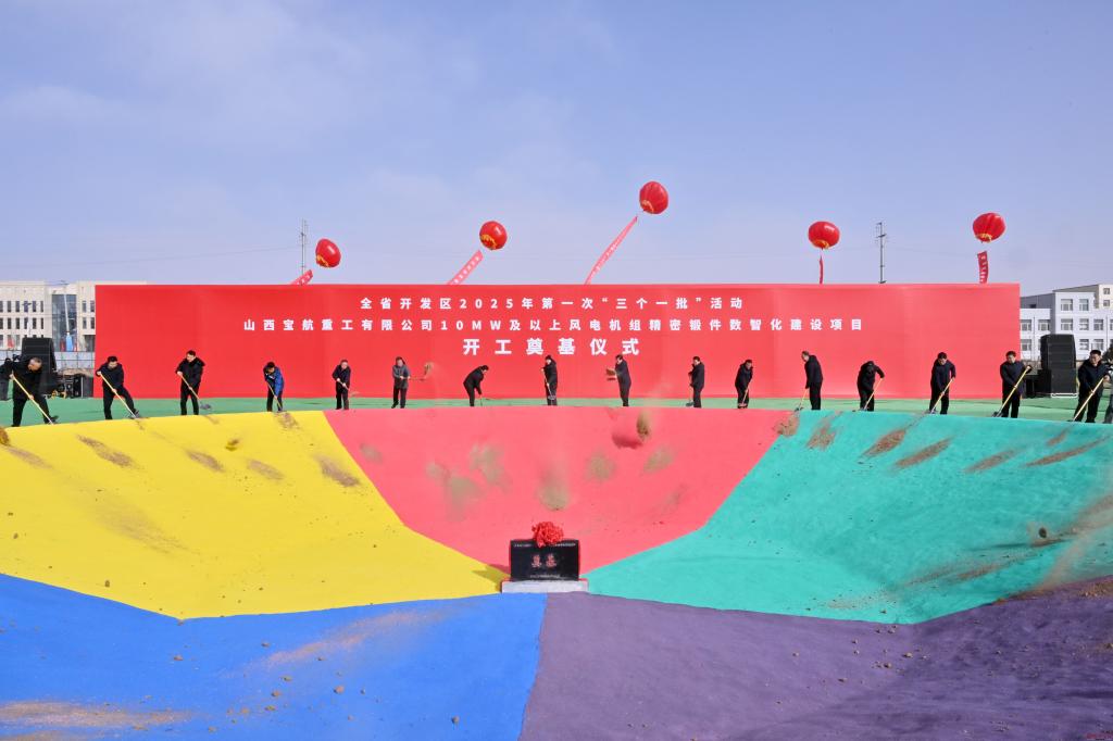 全省開發(fā)區(qū)2025年第一次“三個(gè)一批”活動(dòng)山西寶航重工有限公司10MW及以上風(fēng)電機(jī)組精密鍛件數(shù)智化建設(shè)項(xiàng)目開工奠基儀式現(xiàn)場(chǎng)。馮曉磊 攝