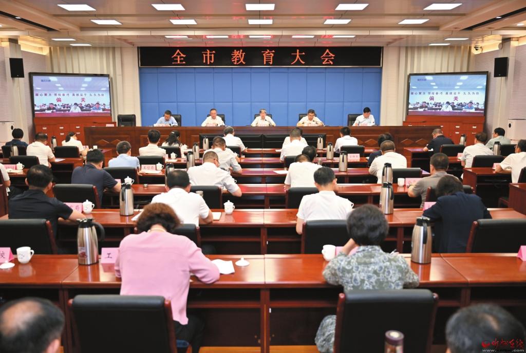會議充分肯定近年來全市教育事業(yè)發(fā)展取得的成績,對教育強市建設各項重點工作作出全面部署。會議指出,要堅持不懈用習近平新時代中國特色社會主義思想鑄魂育人,一體化推進大中小學思想政治教育,培養(yǎng)德智體美勞全面發(fā)展的社會主義建設者和接班人。要堅持以人民為中心發(fā)展教育,推動義務教育優(yōu)質(zhì)均衡發(fā)展,促進學前教育普及普惠和高中階段學校多樣化發(fā)展,前瞻性優(yōu)化區(qū)域教育資源配置,持續(xù)鞏固“雙減”成果,不斷提升基礎教育服務質(zhì)量。要統(tǒng)籌實施科教興市、人才強市、創(chuàng)新驅(qū)動發(fā)展戰(zhàn)略,加快構(gòu)建現(xiàn)代職業(yè)教育體系,增強高等教育綜合實力,培育壯大科技創(chuàng)新力量,不斷塑造高質(zhì)量發(fā)展新動能新優(yōu)勢。要強化師德師風建設,優(yōu)化完善教師管理體制,厚植尊師重教社會風尚,大力培養(yǎng)鍛造一支師德高尚、業(yè)務精湛、結(jié)構(gòu)合理、充滿活力的高素質(zhì)專業(yè)化教師隊伍。要進一步深化教育領域綜合改革,進一步擴大教育開放合作交流,進一步建設全民終身學習的學習型社會,充分激發(fā)教育高質(zhì)量發(fā)展的生機活力。