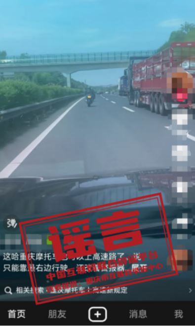真相:近日,重慶市大足區(qū)網(wǎng)民楊某在互聯(lián)網(wǎng)平臺發(fā)布信息稱“重慶摩托車也可以上高速路了”,引發(fā)關注。經(jīng)交管部門核實,根據(jù)《重慶市公路管理條例》第三十一條規(guī)定:在高速公路、高速公路用地范圍內(nèi),禁止非機動車、摩托車、拖拉機、輪式專用機械車、鐵輪車、履帶車和可能損害路面的機具行駛。網(wǎng)傳信息系謠言。目前,大足警方已對造謠網(wǎng)民楊某依法予以查處。(來源:“重慶辟謠”微信公眾號)