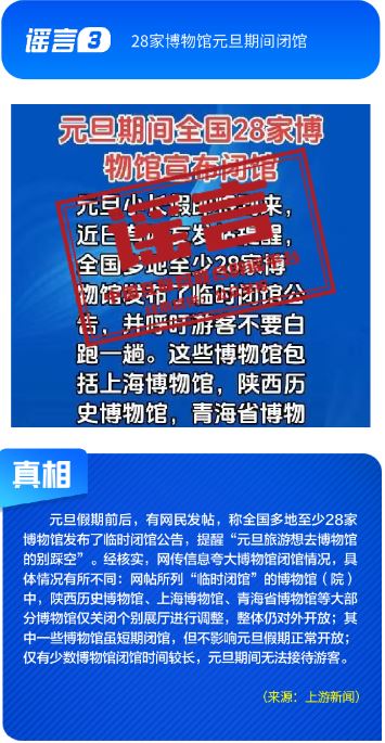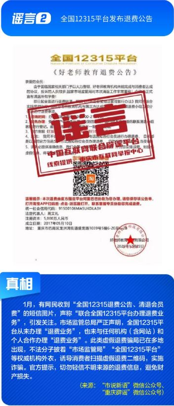 ??公共政策領(lǐng)域謠言誤導(dǎo)公眾決策?!吧绫?](méi)有有效期限制、未到期不能換新卡”是對(duì)社??ü芾碚叩恼`讀,給民眾平添困擾;“28家博物館元旦期間閉館”實(shí)為少數(shù)博物館根據(jù)運(yùn)營(yíng)安排所做的微調(diào),網(wǎng)帖嚴(yán)重夸大實(shí)際閉館情況,引發(fā)負(fù)面炒作;“深圳有望推行12年義務(wù)教育,高中免費(fèi)”是對(duì)現(xiàn)行政策的“超前編造”,誤導(dǎo)學(xué)生及家長(zhǎng)群體;“全國(guó)12315平臺(tái)發(fā)布退費(fèi)公告”,則是假冒監(jiān)管機(jī)構(gòu)名義散播不實(shí)通知,為后續(xù)詐騙行為做鋪墊。