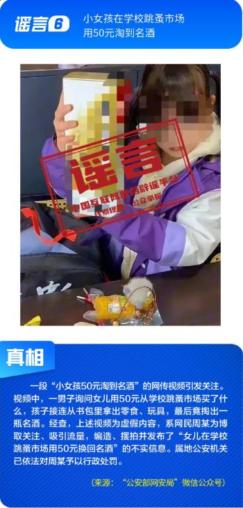 ??社會(huì)民生領(lǐng)域謠言引發(fā)不當(dāng)炒作。“小女孩在學(xué)校跳蚤市場(chǎng)用50元淘到名酒”的視頻,實(shí)為擺拍炒作,虛構(gòu)“撿漏”情節(jié)博取流量;“某奶茶品牌疑似擦邊毒品”蹭炒網(wǎng)上熱點(diǎn),似是而非、夸大其辭的說(shuō)法對(duì)企業(yè)合法經(jīng)營(yíng)造成困擾,也引發(fā)公眾不必要的焦慮;“微信好友數(shù)量過(guò)多會(huì)被封號(hào)”系對(duì)平臺(tái)運(yùn)營(yíng)機(jī)制的無(wú)端猜測(cè),利用網(wǎng)民對(duì)平臺(tái)規(guī)則的陌生進(jìn)行炒作,還可能給黑灰產(chǎn)帶來(lái)可乘之機(jī)。