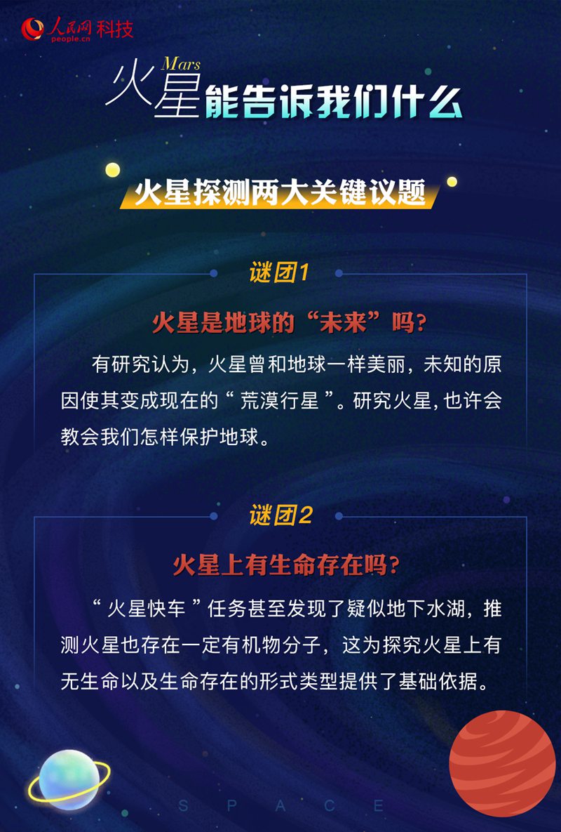 是什么原因?qū)е禄鹦鞘チ怂??它怎樣從一個藍(lán)色星球變成現(xiàn)在一片荒漠的紅色星球?其大氣、環(huán)境是如何演化的?火星的今天有沒有可能就是地球的明天?這些都是科學(xué)家們想要通過相關(guān)探測去解答的問題。