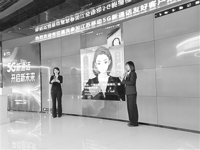 “5G新通話”友好客戶招募活動現(xiàn)場,工作人員演示5G新通話創(chuàng)新應(yīng)用。記者 金鳳攝