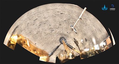 嫦娥五號(hào)探測(cè)器在月球表面展示國(guó)旗。新華社發(fā)