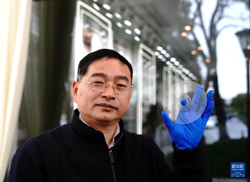 2月21日,上海光機(jī)所阮昊研究員展示“超級(jí)光盤”。新華社記者張建松 攝