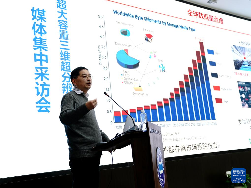 2月21日,上海光機(jī)所阮昊研究員介紹“超級(jí)光盤”的科學(xué)原理。新華社記者張建松 攝