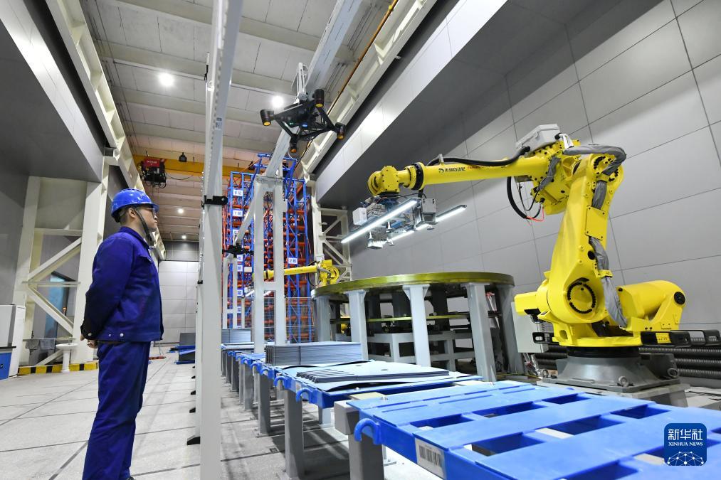 2月22日,在哈電集團哈爾濱電機廠有限責任公司汽輪發(fā)電智能疊片間,工作人員在觀察智能設備運行情況。新華社記者 王建威 攝