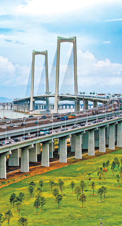伶仃洋上壯觀的深中通道。蘇振飛攝(人民視覺)