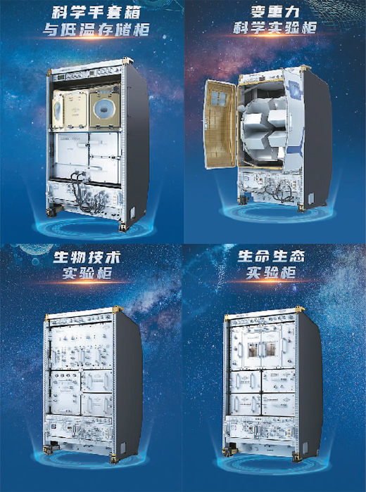 位于中國(guó)空間站問天實(shí)驗(yàn)艙的部分科學(xué)實(shí)驗(yàn)設(shè)施示意圖。圖片來源:中國(guó)科學(xué)院空間應(yīng)用工程與技術(shù)中心