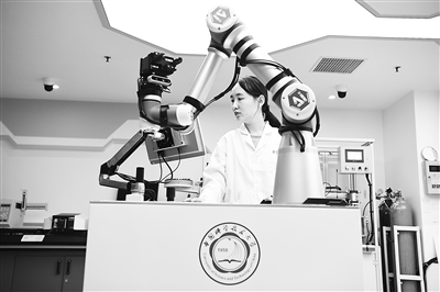 中國(guó)科學(xué)技術(shù)大學(xué)一名博士研究生在實(shí)驗(yàn)室調(diào)試機(jī)器化學(xué)家系統(tǒng)“小來”。新華社記者 張端攝