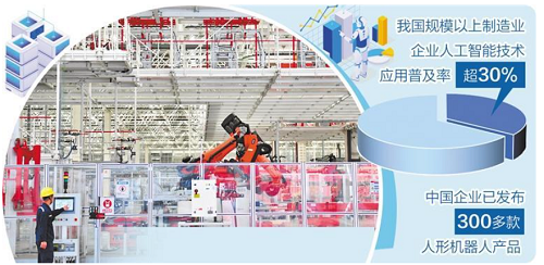 人工智能已具備與產(chǎn)業(yè)大規(guī)模融合的能力,正從單純的技術(shù)工具升維為驅(qū)動(dòng)經(jīng)濟(jì)發(fā)展的核心引擎。數(shù)據(jù)顯示,我國規(guī)模以上制造業(yè)企業(yè)人工智能技術(shù)應(yīng)用普及率已超30%,中國企業(yè)已發(fā)布300多款人形機(jī)器人產(chǎn)品,去年中國開源模型下載量居全球首位,人工智能正從科技攻關(guān)不斷走向場(chǎng)景落地。